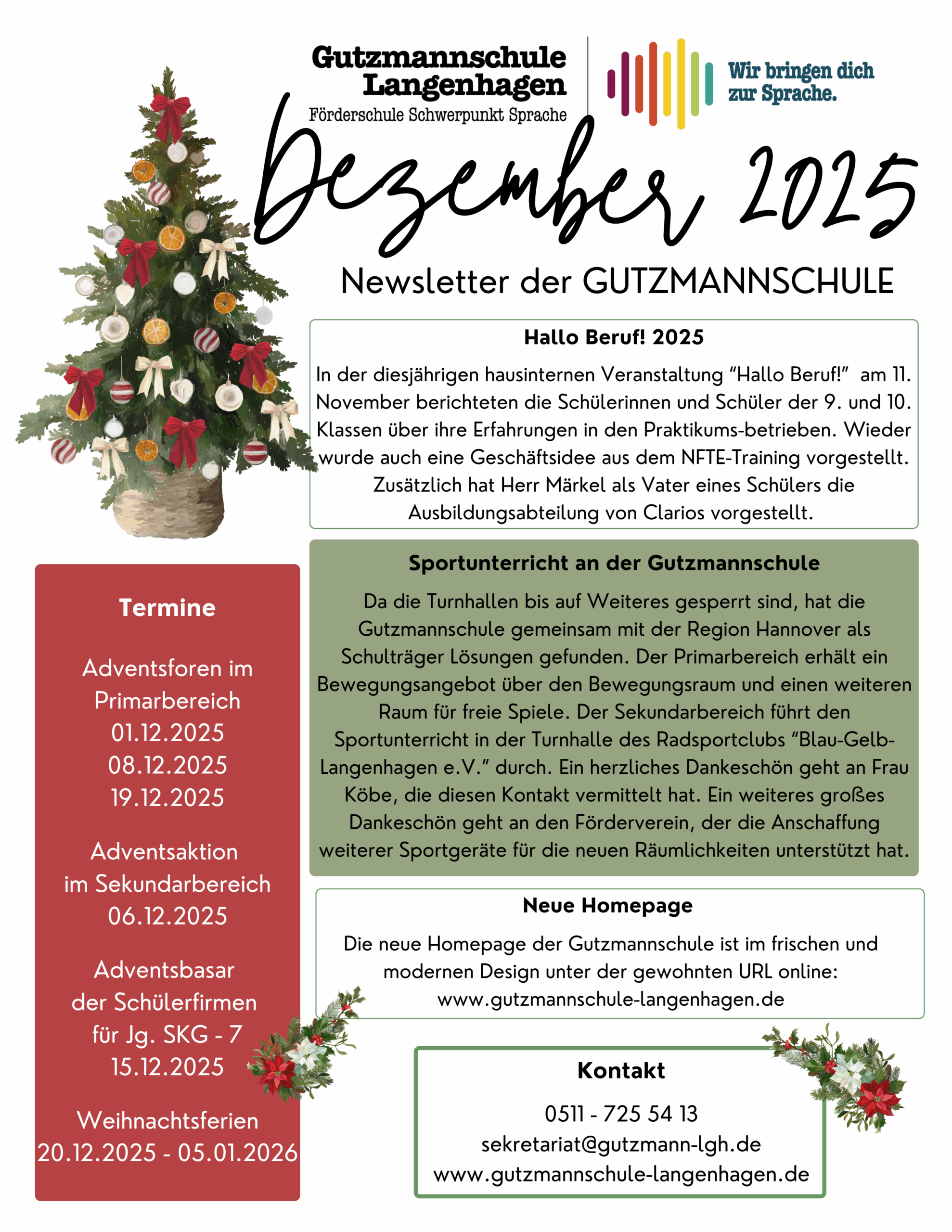 Der Newsletter der Gutzmannschule für Dezember 2025 ist online